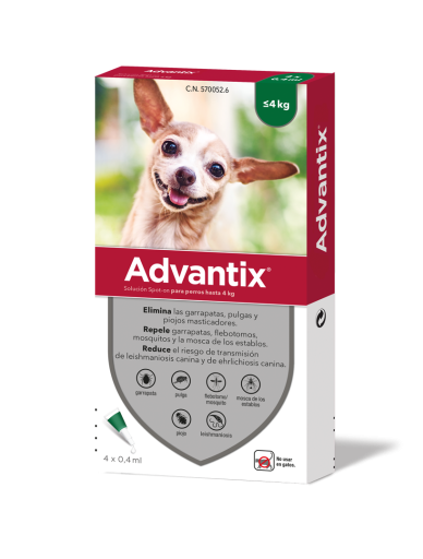 Les pipettes Advantix sont un antiparasitaire efficace qui repousse les puces, les tiques, les poux et le moustique leismania. Ils conviennent aux petits chiens pesant entre 1,5 et 4 kg. Leurs effets sont rapides et durables pour assurer la protection.