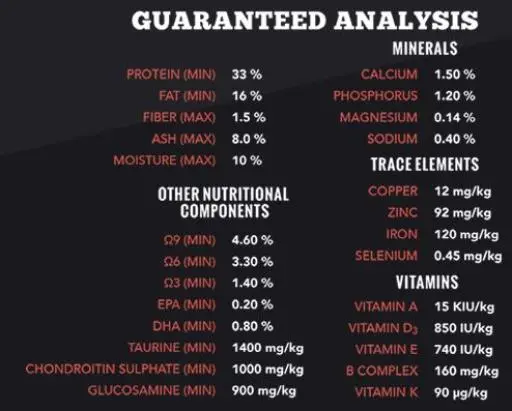 – Ce produit est composé à 100% de viande et de poisson frais.
