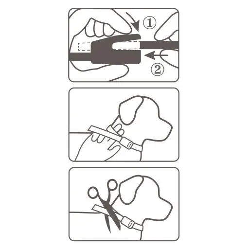 Ajustez le collier au cou de l’animal : ni trop lâche, ni trop serré. Deux doigts doivent pouvoir être placés entre le collier et le cou du chien.