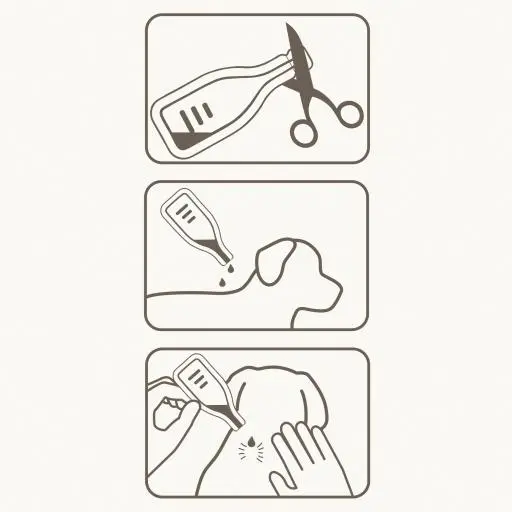- Découpez le pelage de l’animal jusqu’à ce que la peau soit visible. Placez l’extrémité de la pipette directement sur la peau extérieure et pressez légèrement plusieurs fois pour vider le contenu en deux ou trois points différents sur la longueur de l’animal, de l’épaule à la base de la queue, en fonction du poids corporel.