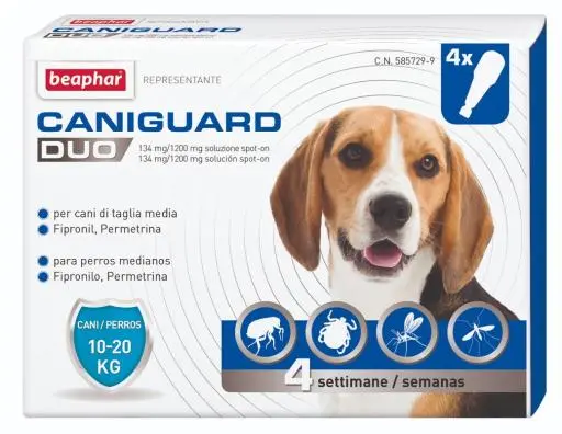 Les pipettes antiparasitaires Caniguard Duo pour chiens sont les nouveaux répulsifs externes à large spectre des prestigieux laboratoires Beaphar qui offrent une protection maximale aux chiens contre les 4 ectoparasites les plus courants pendant 4 semaines : Phlébotomes, Moustiques, Tiques, Puces.