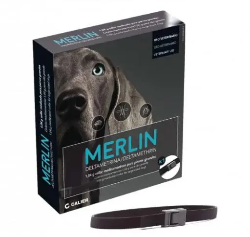 Merlin de Calier est un collier antiparasitaire destiné aux chiens de grande taille. Il les protège des puces, des tiques et des phlébotomes, empêchant ainsi ces parasites de leur transmettre des maladies telles que la leishmaniose. L’ingrédient actif est la Deltaméthrine et offre une protection contre les puces pendant 16 semaines, contrôle les tiques pendant 6 mois et empêche les phlébotomes de se nourrir de votre animal pendant 5,5 mois. Il est recommandé de ne pas utiliser cet accessoire sur les chiots de moins de 7 semaines ou sur les chiens présentant des lésions cutanées.