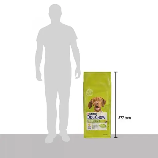 Céréales, viande et sous-produits animaux (8%), extraits de protéines végétales, huiles et graisses, produits d’origine végétale, légumes (racine de chicorée séchée 1,1%), et des minéraux.