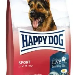 Pour les chiens actifs Aliment complet riche en nutriments et en énergie pour les chiens sportifs et très actifs. Vous souhaitez donner à votre compagnon à quatre pattes une portion supplémentaire de santé de manière équilibrée et naturelle ? Alors Happy Dog fit & vital est exactement ce qu’il vous faut : ses cinq composants protéiques différents garantissent une variété saine de protéines, à l’instar de la nature : saumon, poisson marin, uf, agneau et volaille. Le saumon est riche en acides gras essentiels oméga-3 et oméga-6, idéaux pour la peau et le pelage. Le poisson marin sain apporte à l’organisme de nombreuses vitamines, tandis que les protéines de l’uf ont une valeur biologique et que l’agneau fournit de nombreux minéraux importants. La recette est complétée par de la volaille particulièrement riche en nutriments, qui sert de fournisseur d’oligo-éléments essentiels. Happy Dog fit & vital Sport est parfaitement adapté aux besoins des chiens sportifs et de haute performance. Basé sur le concept unique Happy Dog Natural Life Concept®, les ingrédients particulièrement bien tolérés et la précieuse moule de Nouvelle-Zélande ont un effet positif sur les performances et le système musculo-squelettique. La recette à haute teneur en énergie est idéale pour les chiens sportifs et de haute activité.