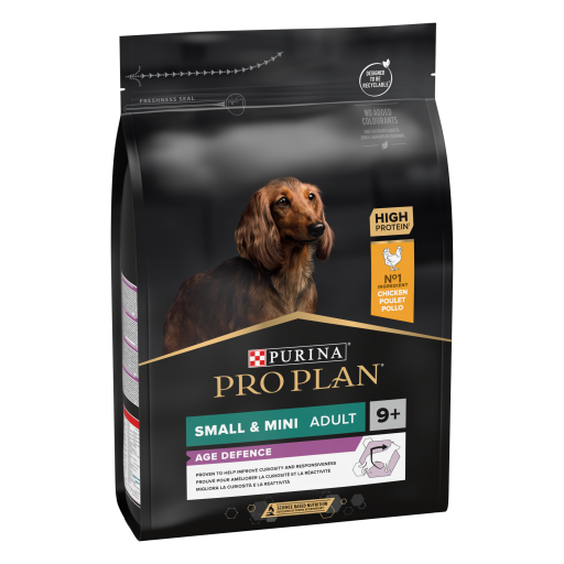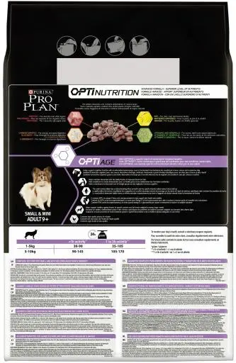 PURINA® PRO PLAN® Small&Mini avec OPTIAGE® riche en poulet est un aliment sec complet adapté aux besoins spécifiques des chiens de petite race de plus de 9 ans.