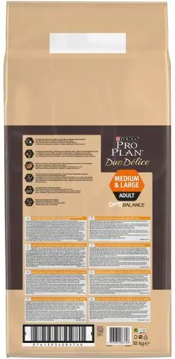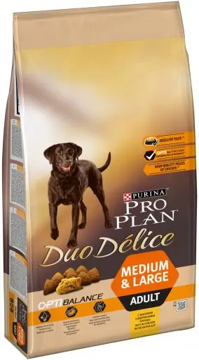 « PURINA® PRO PLAN® DUO DÉLICE « PURINA® PRO PLAN® DUO DÉLICE Medium & Large Adult Chicken est un aliment complet et équilibré avec la bonne combinaison de nutriments pour aider à maintenir la santé et le bien-être des chiens adultes de moyenne et grande race.
