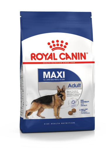Royal Canin Maxi Adult Dog Food for Taille de grande race est un adulte nourriture pour adultes chiens de grande race. Cet aliment est adapté pour les chiens de 15 mois et d’ un poids adulte entre 26 et 44 kg.