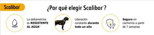 Scalibor est un collier antiparasitaire externe pour chiens qui contient de la deltaméthrine, un puissant insecticide et acaricide aux propriétés répulsives (antigorgement). Le collier Scalibor possède une action répulsive contre les phlébotomes, les tiques et les moustiques à partir d’une semaine après la pause.