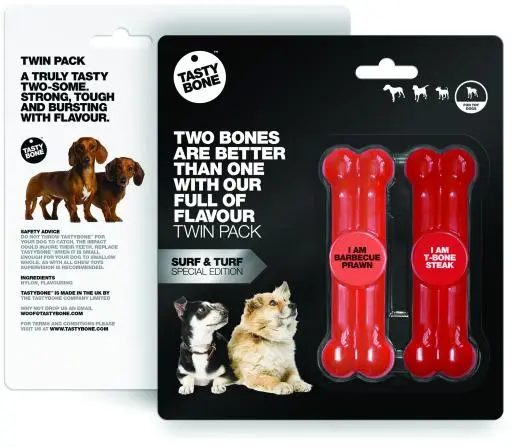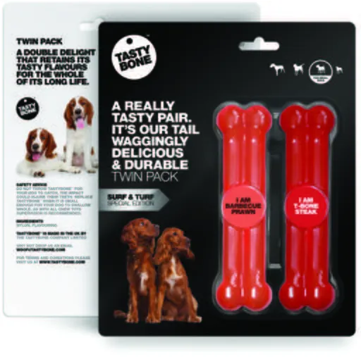 Caracteristiques Tastybone Twinpack Surf ‘N’ Turf Crevettes Barbecue & Steak