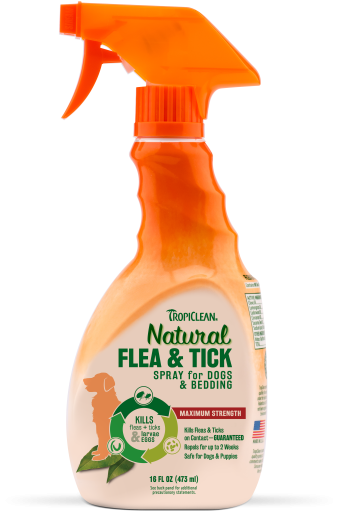 Le spray anti-puces et anti-tiques TropiClean pour chiens et literie est garanti pour tuer les puces et les tiques par contact.